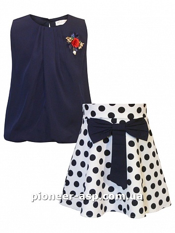Комплект летний для девочки "Moda Mira" 2057 синий, белый (блуза, юбка)